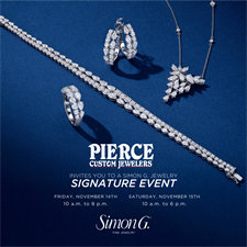 Join Pierce Custom Jewelers for this two-day Simon G. Jewelry Signature Event is your exclusive opportunity to see Simon G.’s most sought-after designs up close — from stunning engagement rings to statement necklaces and bracelets that turn heads. And meet the iconic designer, Simon Ghanimian, in person! Join us on November 14th from 10:00 AM to 8:00 PM and November 15th from 10:00 AM to 6:00 PM to sip wine, enjoy tastings, and get an inside look at the full Simon G. collection. Plus, take advantage of 10% off your entire purchase — just in time for the holidays.